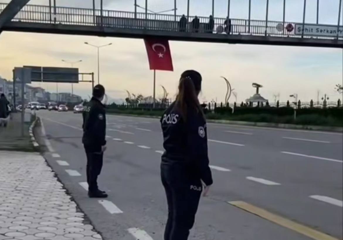 Şəhidləri türk polisi hərbi salamla qarşılayıb.