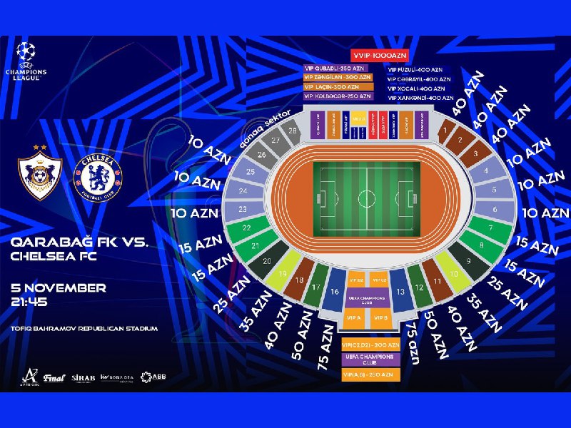 Bu gün saat 15:00-da Çempionlar Liqasında “Qarabağ” və “Çelsi” komandaları arasında keçiriləcək oyuna bilet satışına start verilir.