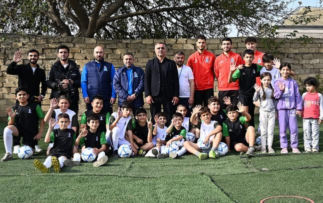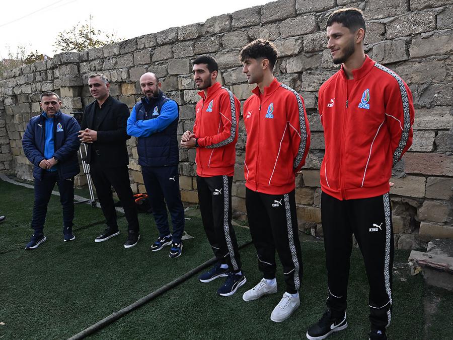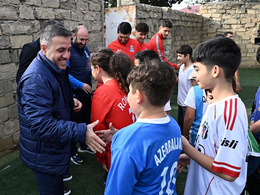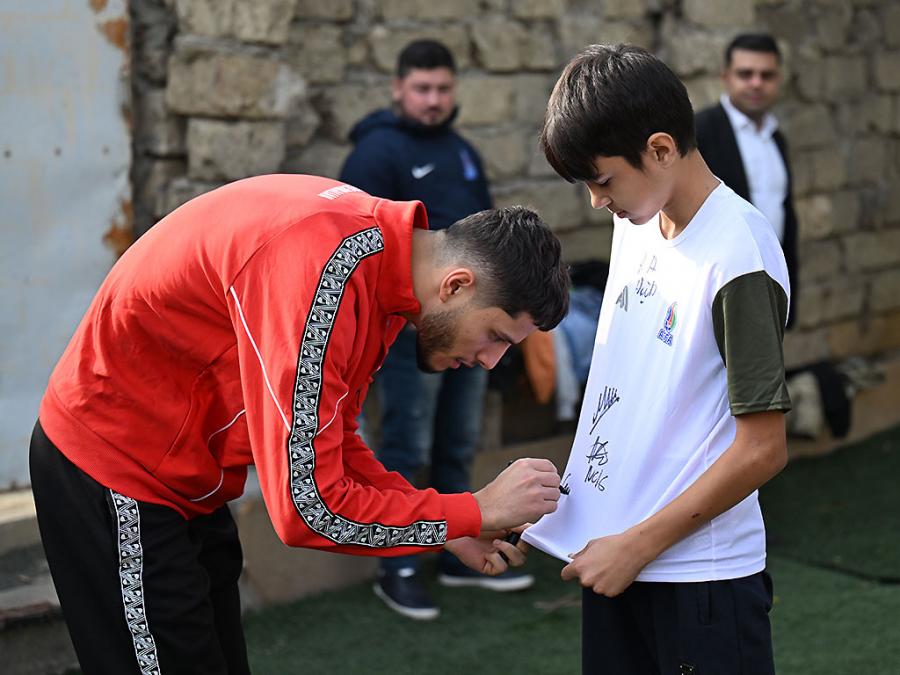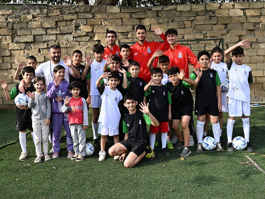 Azərbaycan millsinin üzvləri Bakının Kürdəxanı qəsəbəsində məşq edən yeniyetmə futbolçularla görüşüblər.