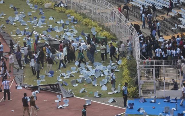 Messinin gedişindən sonra azarkeşlər şüşə və stullar atmağa, hətta maneələri sındırmağa başlayıblar.