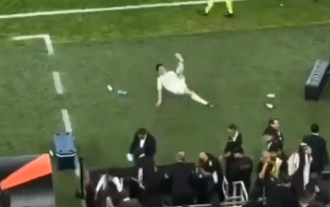 Lakin bu zaman gənc yarımmüdafiəçi yerə yıxılıb.