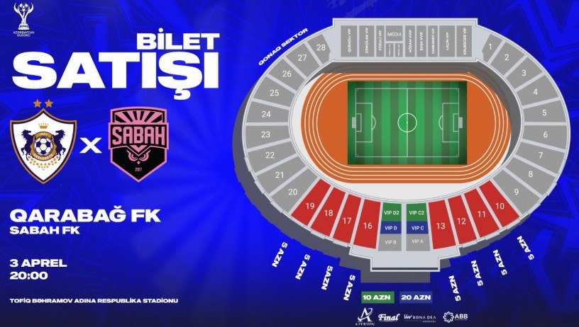 Azərbaycan Kubokunun yarımfinal mərhələsi çərçivəsində keçiriləcək “Sabah”la oyunun biletləri sabah saat 15:00-dan etibarən satışda olacaq.