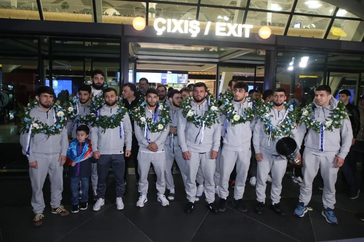 Albaniyada keçirilən Avropa çempionatında 2 qızıl, 3 bürünc medal qazanaraq komanda hesabında Avropa çempionu olan yunan-Roma güləşi üzrə milli komandanın Heydər Əliyev Aeroportunda qarşılanma mərasimi keçirilib.