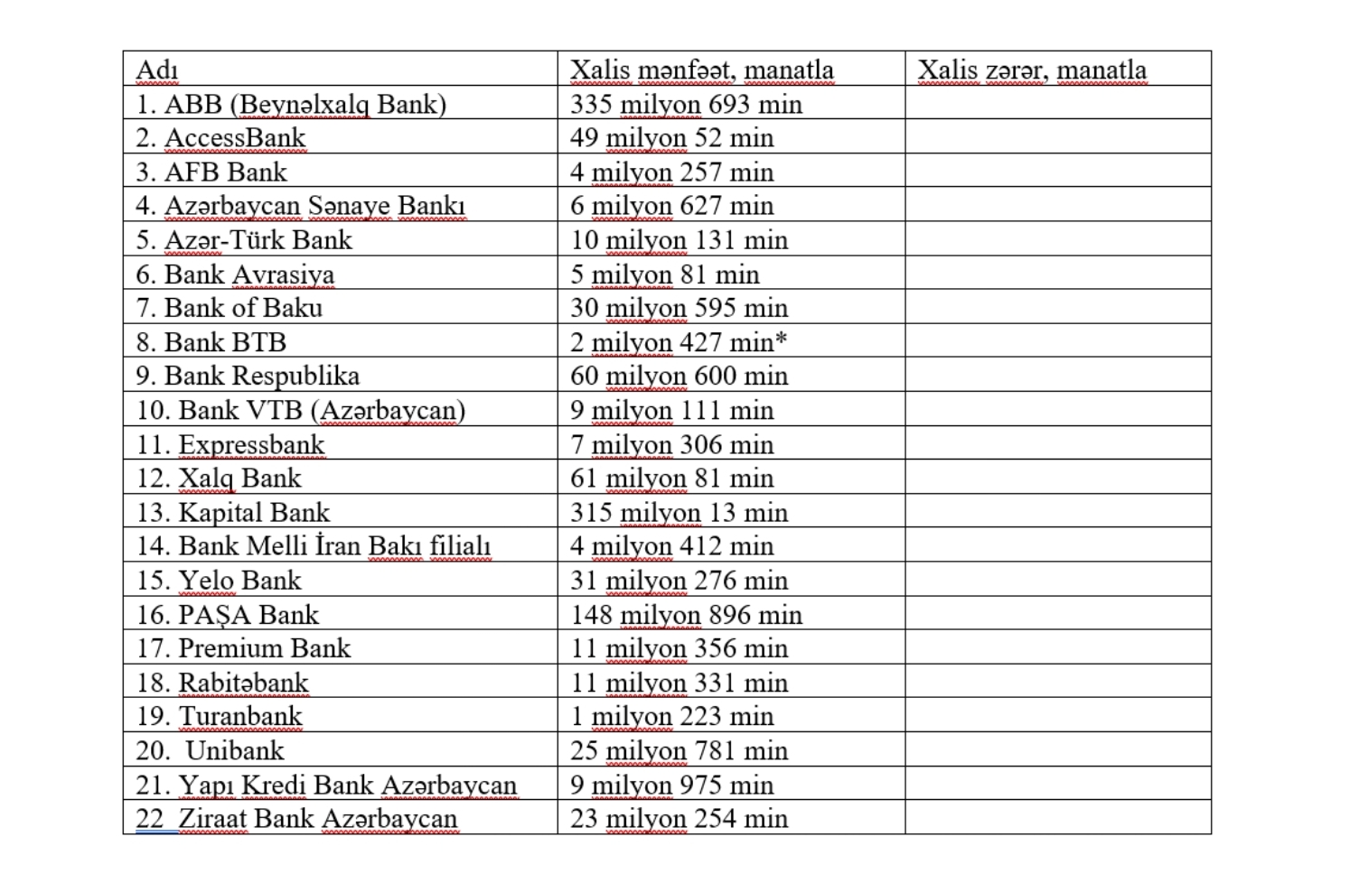 Bankların adları və mənfəət məbləğləri ilə aşağıdakı cədvəldən tanış ola bilərsiniz. (marja.az)