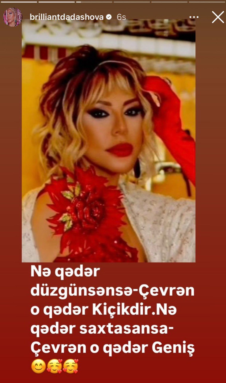Xalq artisti Brilliant Dadaşova diqqətçəkən paylaşım edib.