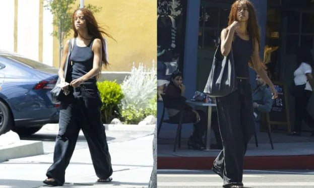 O, bu dəfə qara qolsuz köynək, enli şalvar və başmaqdan ibarət rahat obraz seçib. Onun görünüşü qəsdən sadə və sərbəst təsir bağışlayıb. Bu tərz Maliya Obamanın artıq tanınan bohem üslubuna uyğun olub.