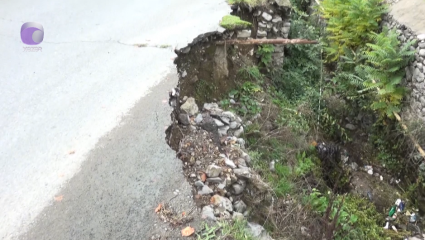 Şəkidə son günlər yağan yağışlar ərazidən keçən Dəyirman çayının istinad divarını dağıdıb, su yolun yarısını yuyub. Yolaltı torpaq yuyulduğundan asfalt örtüyü təhlükəli vəziyyətə düşüb.