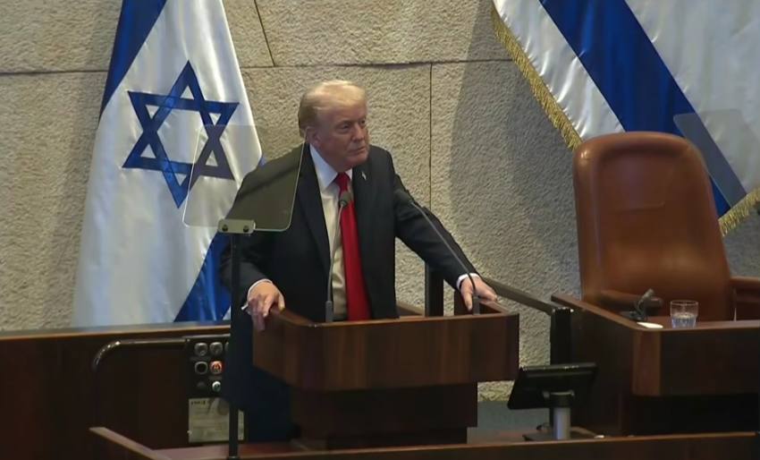Bizim.Media xəbər verir ki, Knesset üzvləri Ayman Odeh və Ofer Kassif Trampın çıxışı zamanı "soyqırımı" yazısı olan plakat qaldırıblar və Trampın çıxışını yarıda kəsiblər. İnsidentə yol verən deputatlar dərhal parlament zalından çıxarılıblar.