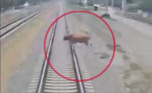 Dəmir yoluna çıxan mal-qara qatarlara təhlükə yaratdı – ANBAAN VİDEO