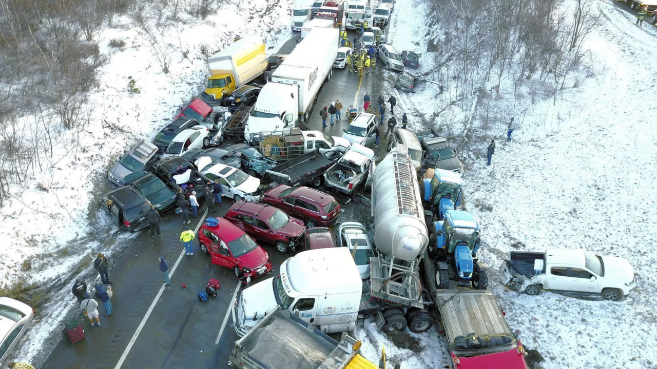 ABŞ-ın İndiana ştatında güclü qar yağışı səbəbindən avtomagistralda iri qəza baş verib.