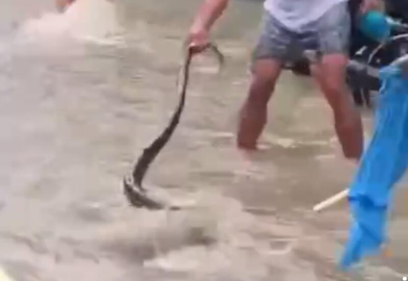 Xəbər verdiyimiz kimi, Filippində, Legaspi şəhərinin bir hissəsi “Vilma” tayfunu səbəbindən su altında qalıb. Bu zaman sakinlər suyun içində uzunluğu 5 metr olan bir pitona rast  gəliblər.