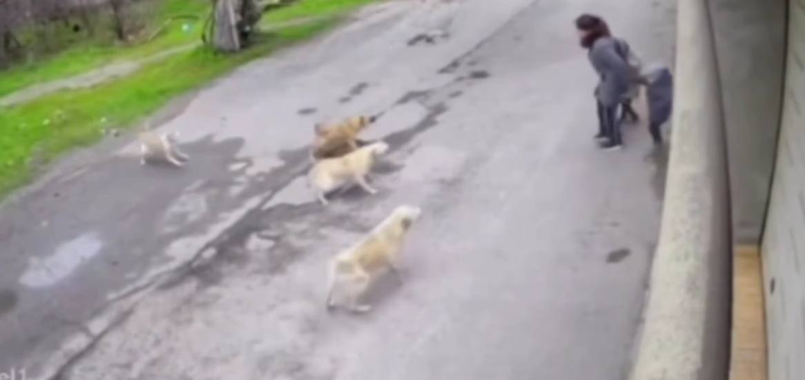 Xoşbəxtlikdən uşaqlı qadın itləri qova bilib və oradan uzaqlaşdırıb.