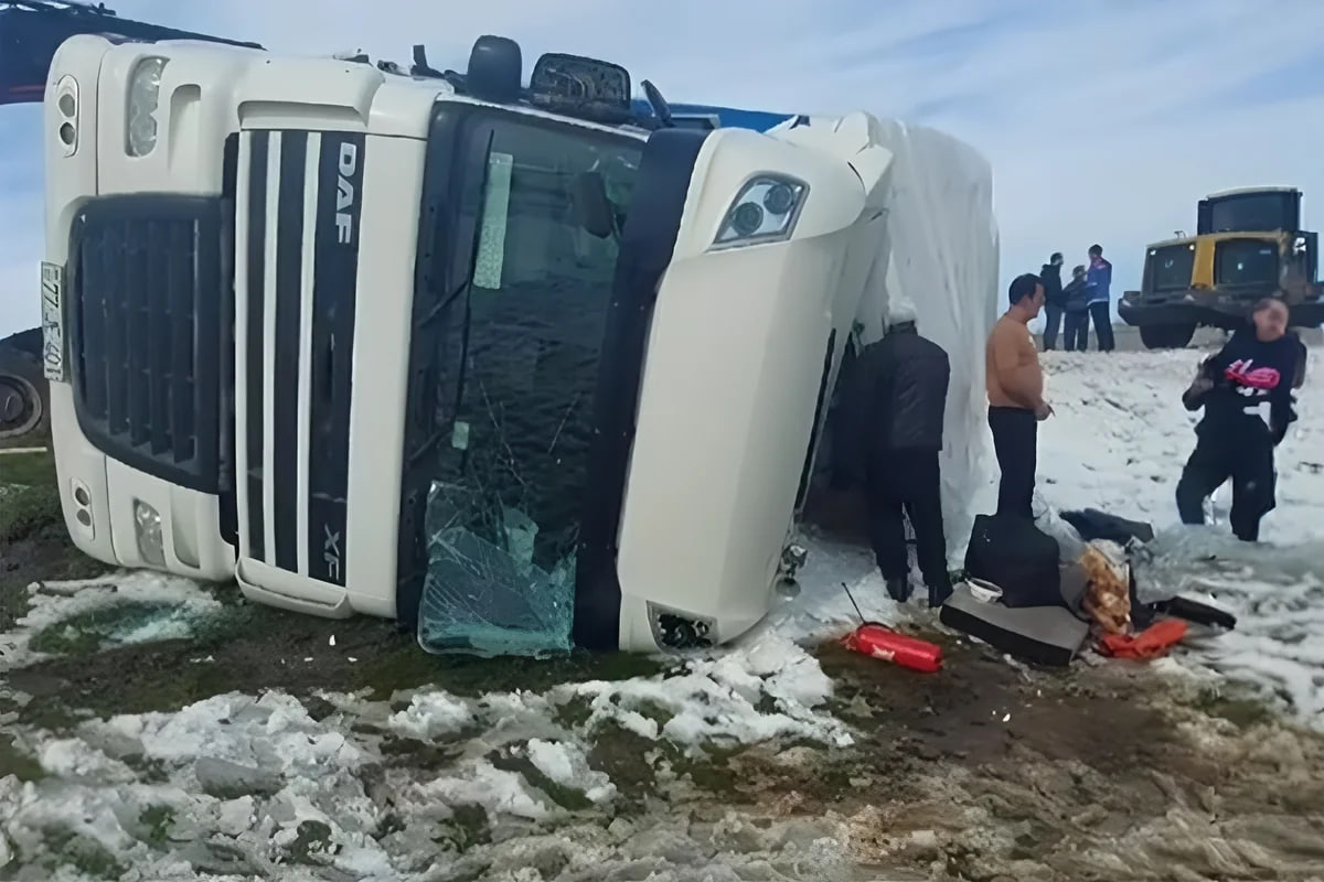Qeyd olunub ki, yolun sürüşkən olması səbəbindən yük avtomobili aşıb.