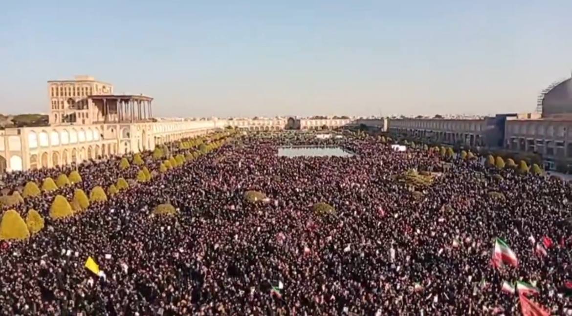 Bizim.Media xəbər verir ki, İranın Press TV telekanalının yayımladığı görüntülərdə böyük insan kütləsinin Nəqşi-Cahan meydanında toplandığı görünür.