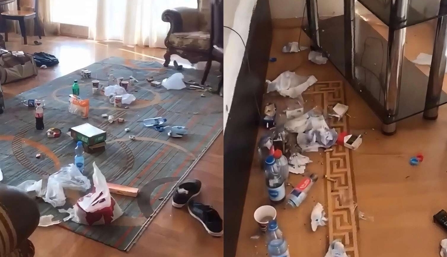 Ərəblər Bakıda evi zibilliyə döndərdi - Biabırçı görüntülər - VİDEO