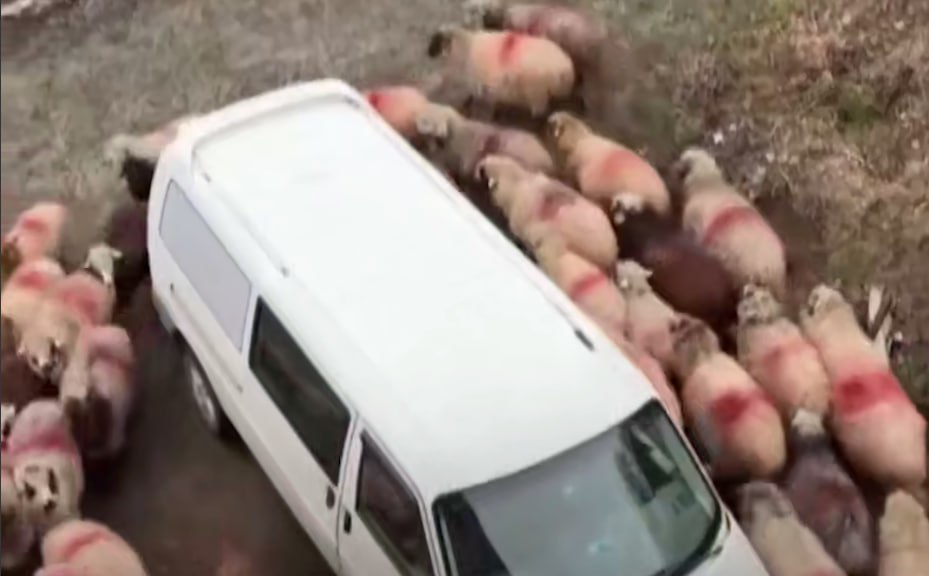 Trabzonda tövlədən buraxılan qoyunlar mikroavtobusun ətrafında dairə yaradaraq dəqiqələrlə fırlanıblar.