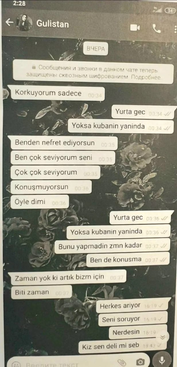 Türkiyədə, Tuncelidə Munzur Universitetinin tələbəsi Gülistan Dokunun 5 yanvar 2020-ci ildə itkin düşməsi ilə bağlı istintaqda yeni detal ortaya çıxıb. Məlumata görə, gənc qızın itkin düşməzdən bir neçə saat əvvəl sevgilisi Zeynal Abakarovla apardığı WhatsApp yazışmaları üzə çıxıb.