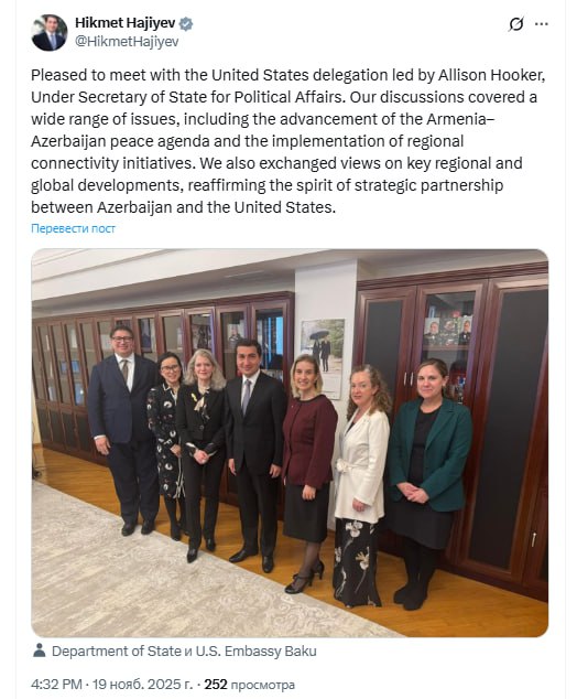 Bizim.Media xəbər verir ki, Hikmət Hacıyev bu barədə özünün "X" sosial media hesabında paylaşım edib.
