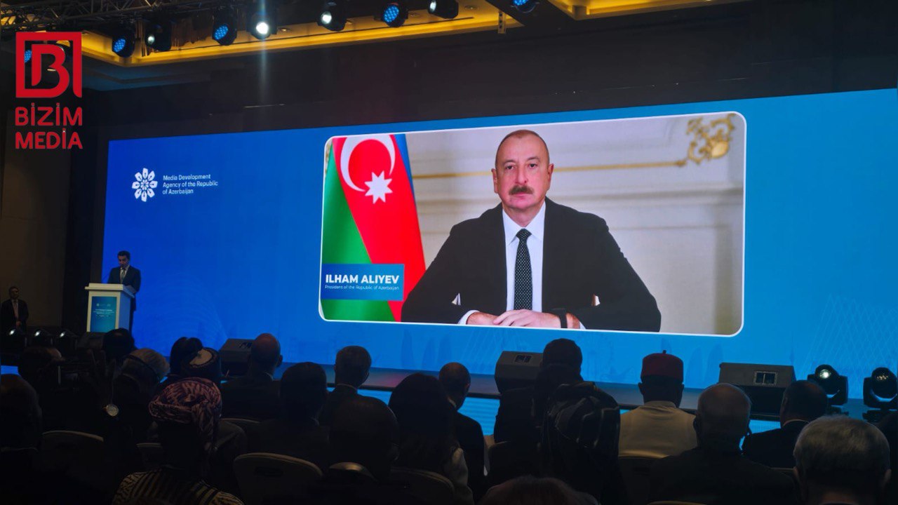Bizim.Media xəbər verir ki, Azərbaycan Respublikası Prezidentinin Administrasiyasının Xarici siyasət məsələləri şöbəsinin müdiri Hikmət Hacıyev əvvəlcə Prezident İlham Əliyevin Forum iştirakçılarına müraciətini səsləndirib.