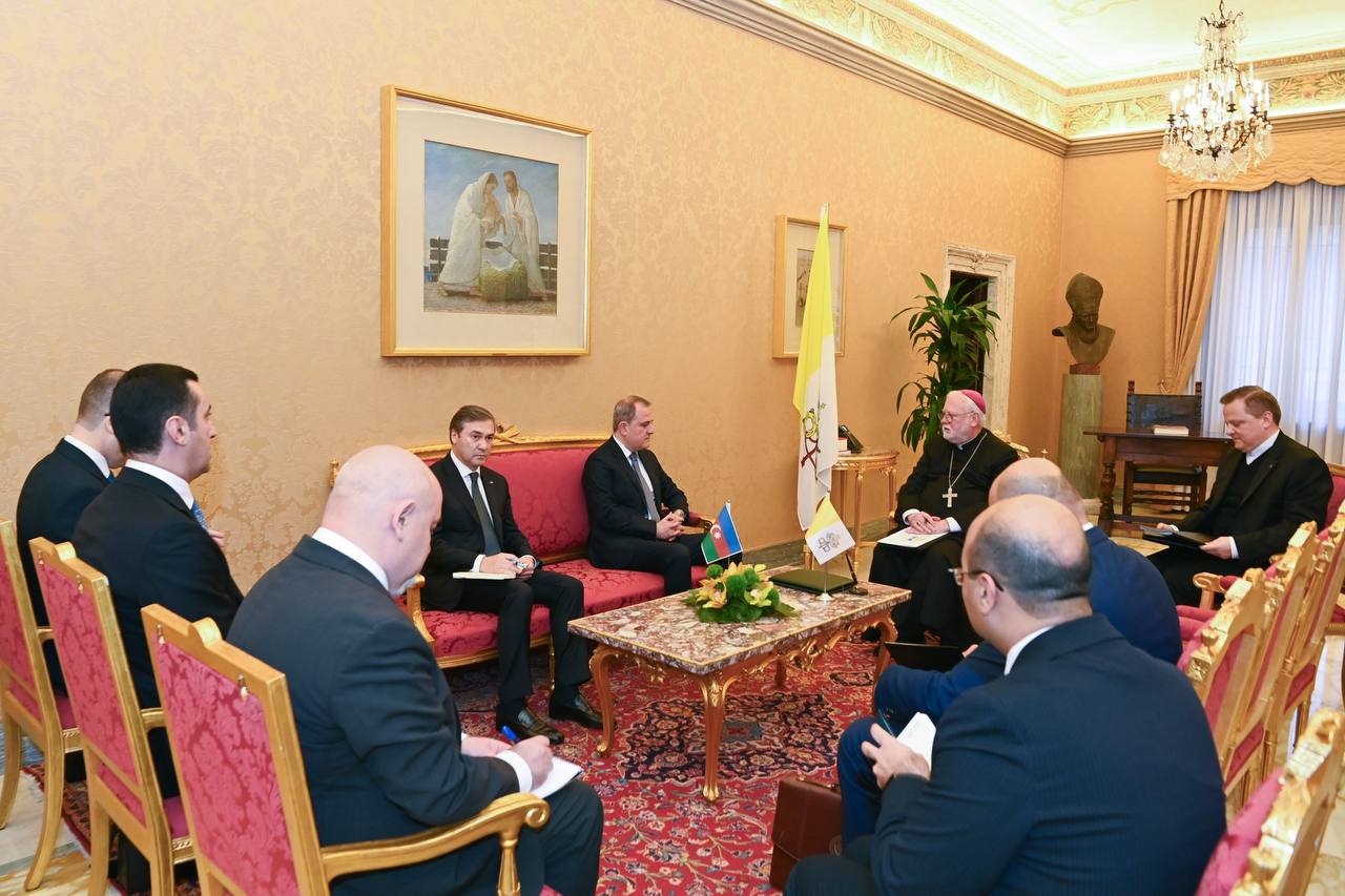 Azərbaycanxarici işlər naziri Ceyhun Bayramov Vatikana rəsmi səfəri çərçivəsində Müqəddəs Taxt-Tacın dövlət və beynəlxalq təşkilatlar üzrə katibi arxiyepiskop Riçard Qallager ilə görüşüb.