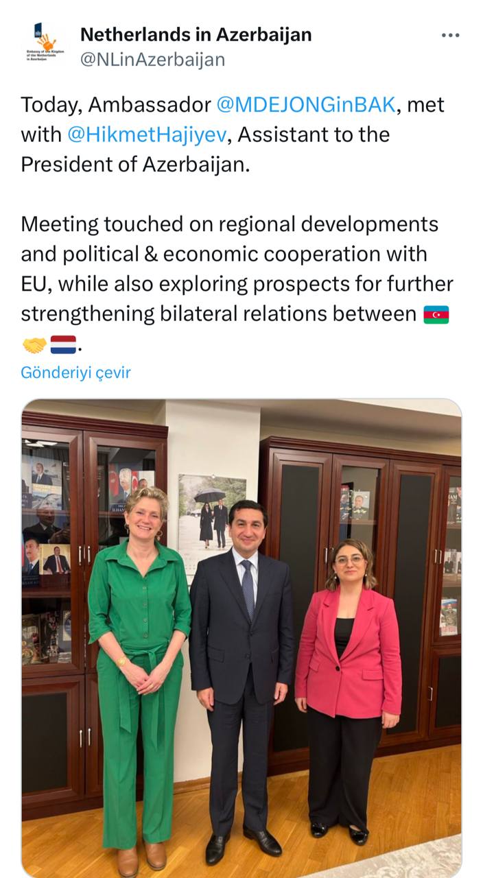 Bizim.Media xəbər verir ki, bu barədə Niderlandın Azərbaycandakı səfirliyinin rəsmi X hesabında paylaşım edilib.