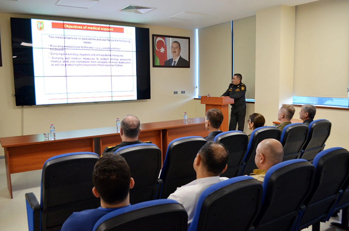 Müdafiə Nazirliyinin Tibb İdarəsində keçirilən görüşdə qonaqlara Azərbaycan Ordusunda hərbi tibb sahəsində aparılan uğurlu islahatlar, tibb xidmətinin təşkili, tətbiq olunan yeni praktik müalicə yanaşmaları, xidmətdə və ehtiyatda olan hərbi qulluqçulara və onların ailə üzvlərinə göstərilən tibbi xidmətlər barədə brifinq təqdim olunub.