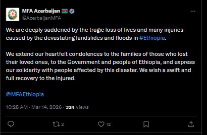 Azərbaycan Xarici İşlər Nazirliyi Efiopiyaya başsağlığı verib.