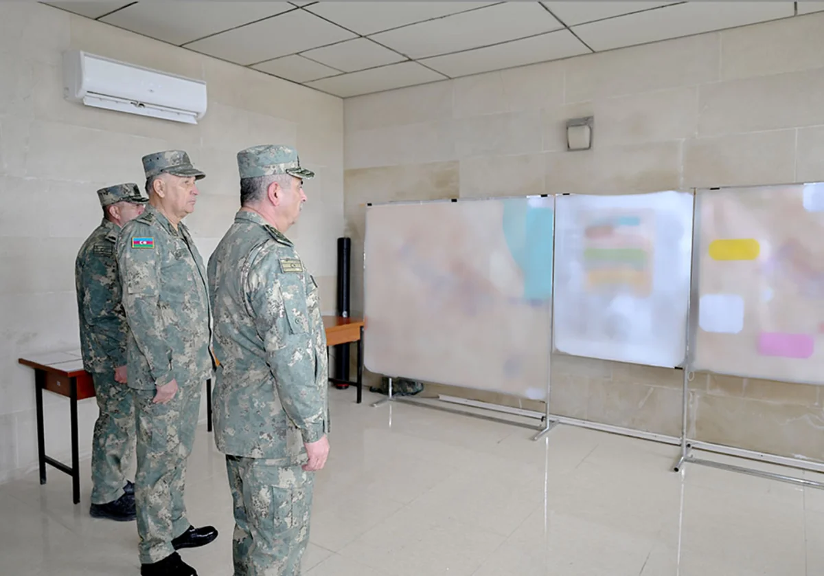 Müdafiə naziri general-polkovnik Zakir Həsənova xəritə üzərində təlimin mövzusu, mərhələləri və icra olunma ardıcıllığı məruzə edilib.