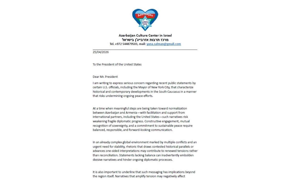 Məktublarda Nyu York merinin Azərbaycan xalqına qarşı səsləndirdiyi ittihamlarla bağlı ciddi narahatlıq ifadə edilib.